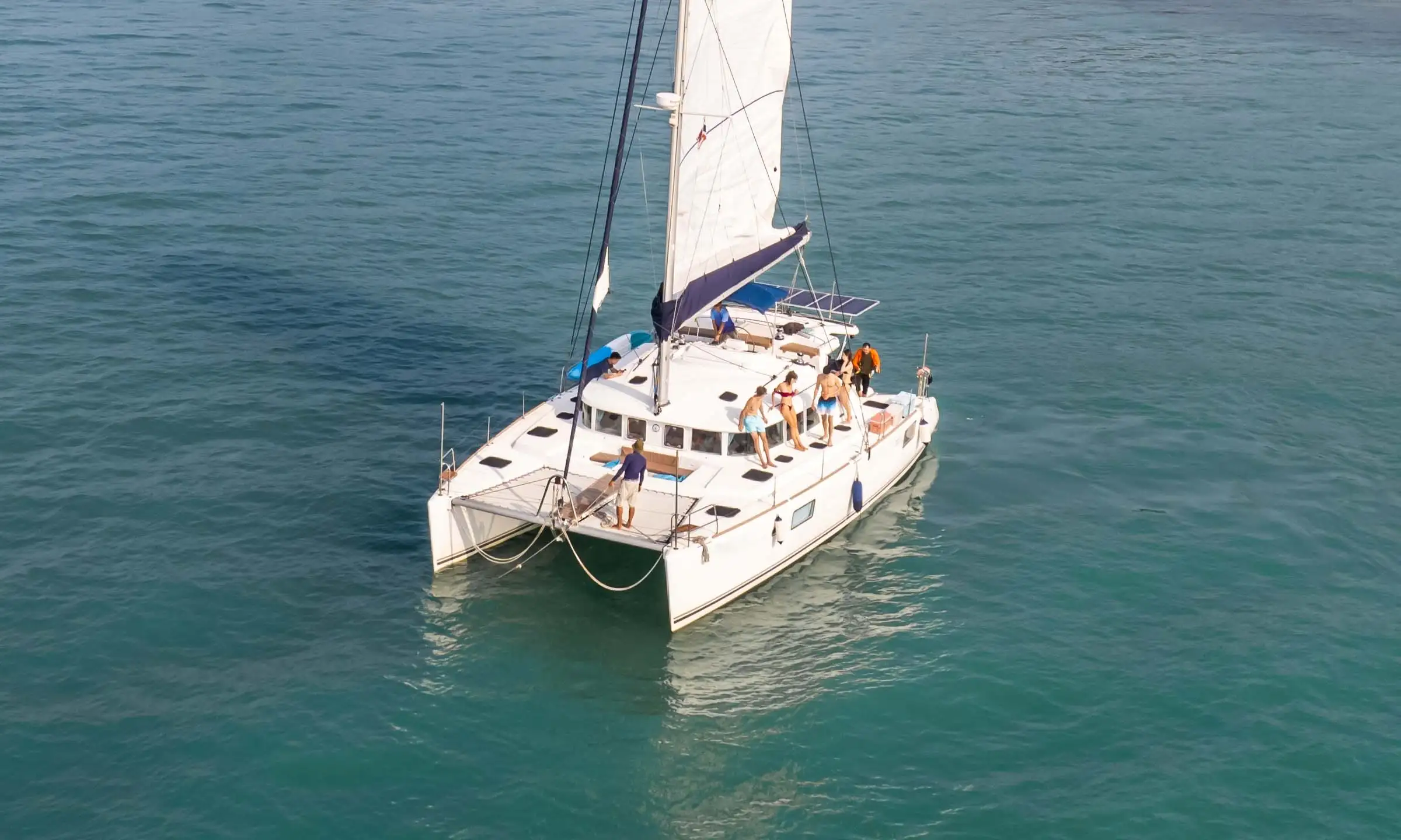 A twin-hull design creates a stable platform at anchor and while underway. Many charter guests find the reduced rolling motion more comfortable, particularly first-time charterers and those traveling with young children.